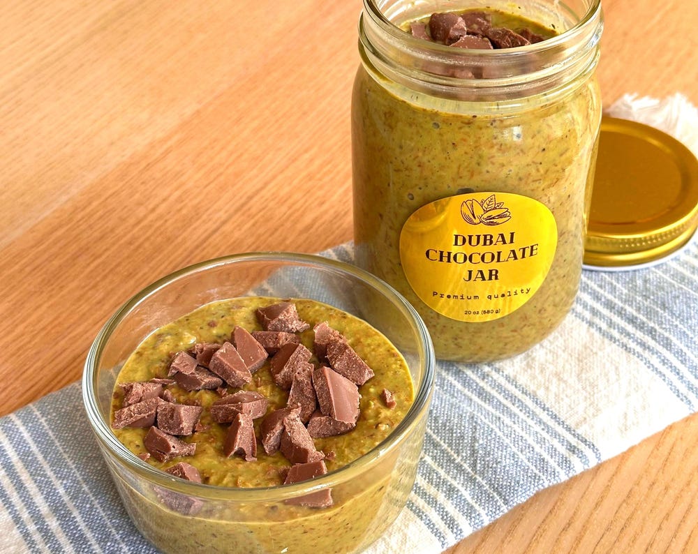 Dubai Chocolate in a Glass Jar (20 oz) with Chocolate Chunks.