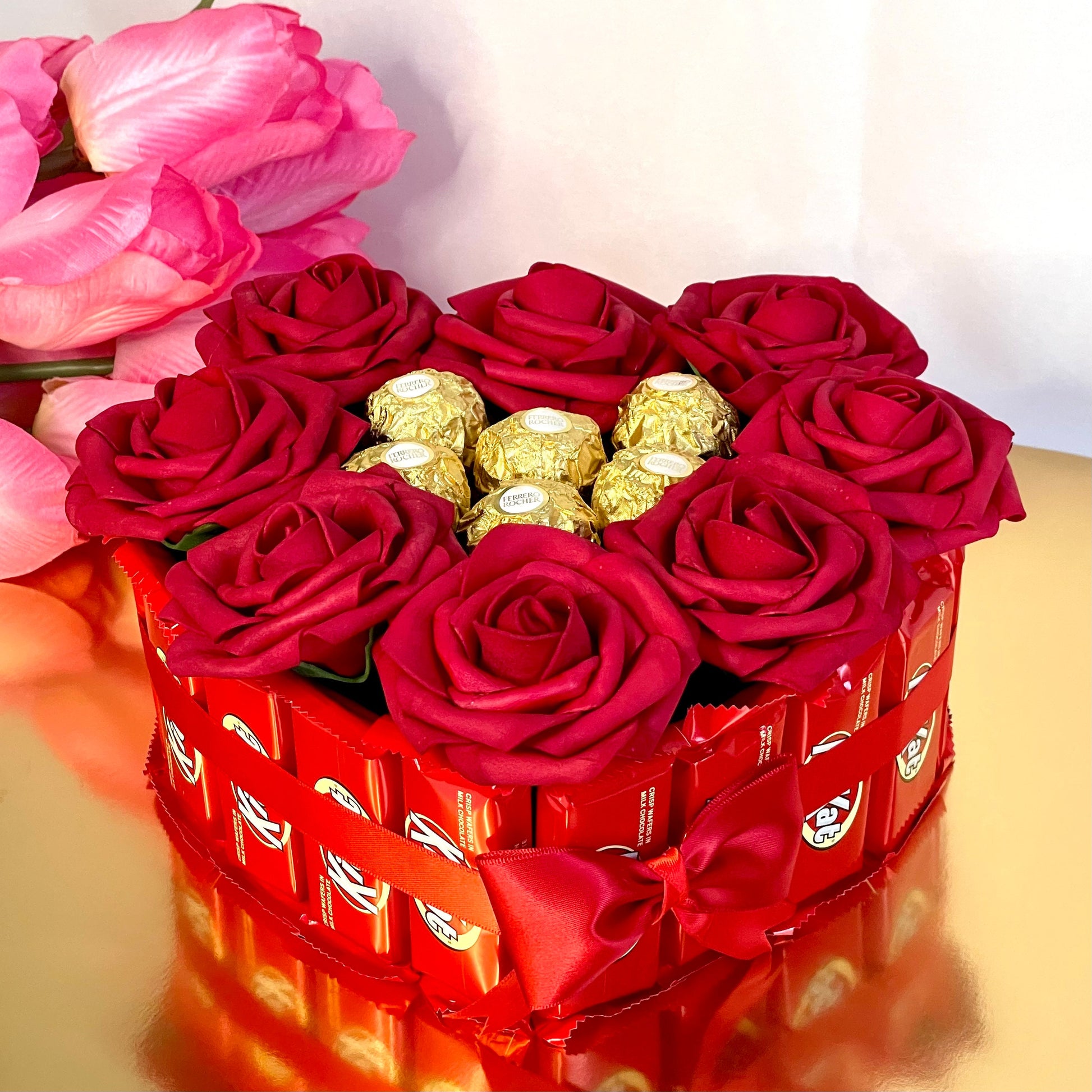 ★ Heart Shaped Kitkat Bouquet with Ferrero Rocher chocolates and Roses 🌹